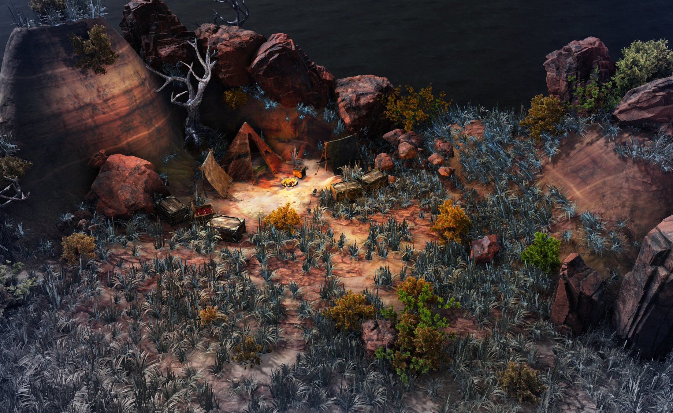 Badlands FOB – this forward operating base nestles against high cliffs, limiting avenues of approach and giving defenders a strong positional advantage. Crates, tents, and boulders inside the camp create layered cover, while attackers must rely on sparse rocks to shield their advance across open ground. The included day and night variants let you shift the encounter’s tone—whether it’s a cautious daylight standoff, a surprise raid under starlight, or a stealth mission where shadows determine success. Ideal for staging ambushes, negotiations, or infiltration scenarios in the wasteland.