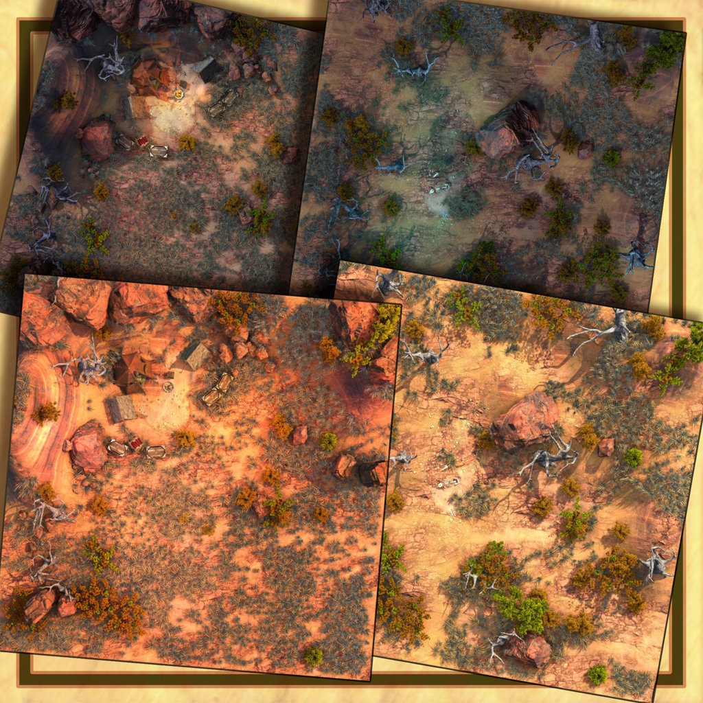 Looking to finish this off with a starting point or final destination for you desert campaign?! Purchase the Badlands Village map to complete the set!
