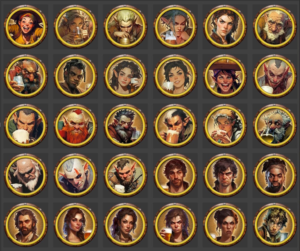 - 30 round WEBP tokens of unique patrons, adventurers, barkeeps, and barmaids