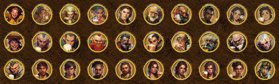 Fill your favorite inn, dive bar, or smoky taproom with this 30-token pack of unique tavern patrons, each ready for mischief, rumors, or brawls. Includes:
